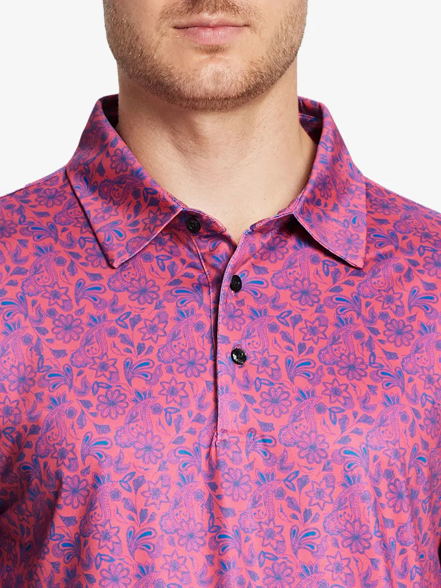 Experience ultimate comfort and style with our Performance Quick Dry Print Golf Polos. Moisture-wicking, quick-drying, and UPF 30+ protection keep you cool and dry. Lightweight, soft, and 4-way stretch fabric ensures a comfortable and breathable fit. Designed for golf, tennis, and outdoor activities, these polos maintain their shape effortlessly. Transition seamlessly from sports to casual wear with these versatile men's shirts.